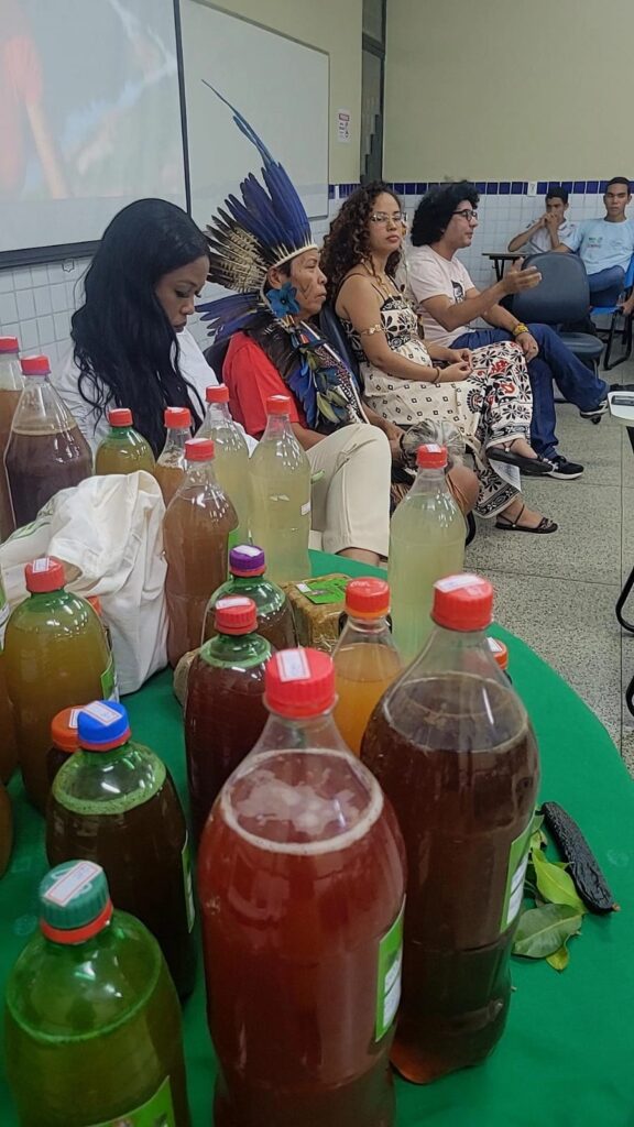Se nós vermos as nossas pessoas dizerem, porque eu vejo muitos alunos que se informam: “ah, eu vou para o agronegócio, o dinheiro lá é melhor”. É não, você está se matando nas suas próprias mãos. E também dizer para vocês, que aquela medicina ali, ali tem para todas as doenças. Cura, são remédios tradicionais, não impede você de beber o comprimento que você está tomando. Pode tomar, não tem como intoxicar. Tem a rapadura do pequi, nós temos o xarope, nós temos também o maxixe, que ele serve como medicamento. Para isso que nós tomamos isso aí, nós vamos ter mais um dia de vida. E toda doença que a gente tem, ele vai curar. Ele vai curar. E tem muito remédio para anemia. O nosso companheiro ali também, ele fez um exame. Ele tem alto grau de anemia. Ele ali, olha. Porque muitas vezes a doença, ela vem para o nosso corpo. Só que nós não sabemos. Porque você não tem o poder de dizer que você está doente, parente.