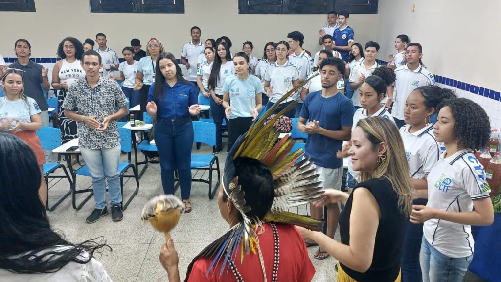 É por isso que a gente está fazendo palestras nos territórios, palestras na cidade, estamos fazendo o Toré, a cultura que a gente não tinha, os espaços para a gente eram todos fechados. Quem diria um indígena que ele vem dar aula numa sala que nem essa. Quem diria? Por isso que eu falei pra vocês: as correntes estão quebrando.